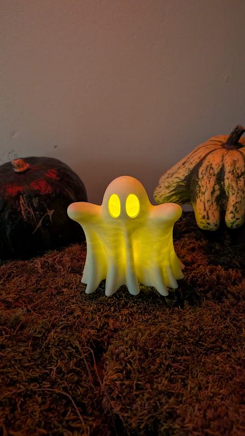 Made from eco-friendly, biodegradable PLA, this ghost tealight cover is both stylish and sustainable. Measuring approximately 10 cm tall, 10 cm wide, and 7.5 cm deep, it’s the perfect size to sit on a shelf, windowsill, or tabletop. Add a flickering LED tealight (not included) to make your ghost glow and spread a soft, comforting light. Ideal as a Halloween gift, a fall home accent, or a spooky nightlight, this little ghost is sure to enchant guests and become a favorite seasonal decoration year after year!