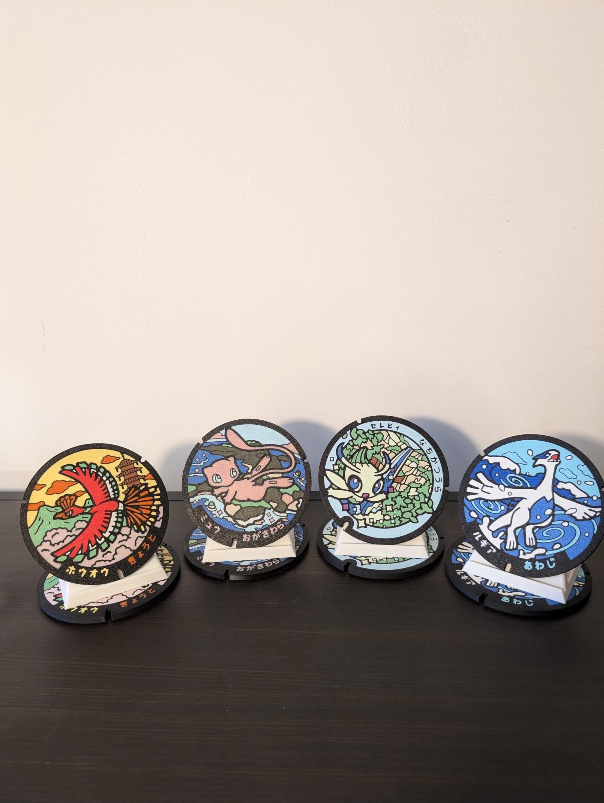 Bring a touch of Japanese Pokémon charm straight into your home with this stunning Pokémon Manhole Cover Coaster Set (Set 4)! Inspired by the beautifully illustrated Poké Lids found across Japan, each coaster features a unique design showcasing Mew, Celebi, Ho-Oh, or Lugia. Whether you’re a longtime Pokémon collector or simply love distinctive anime-inspired décor, this set makes a perfect centerpiece for your coffee table, gaming setup, or display shelf.