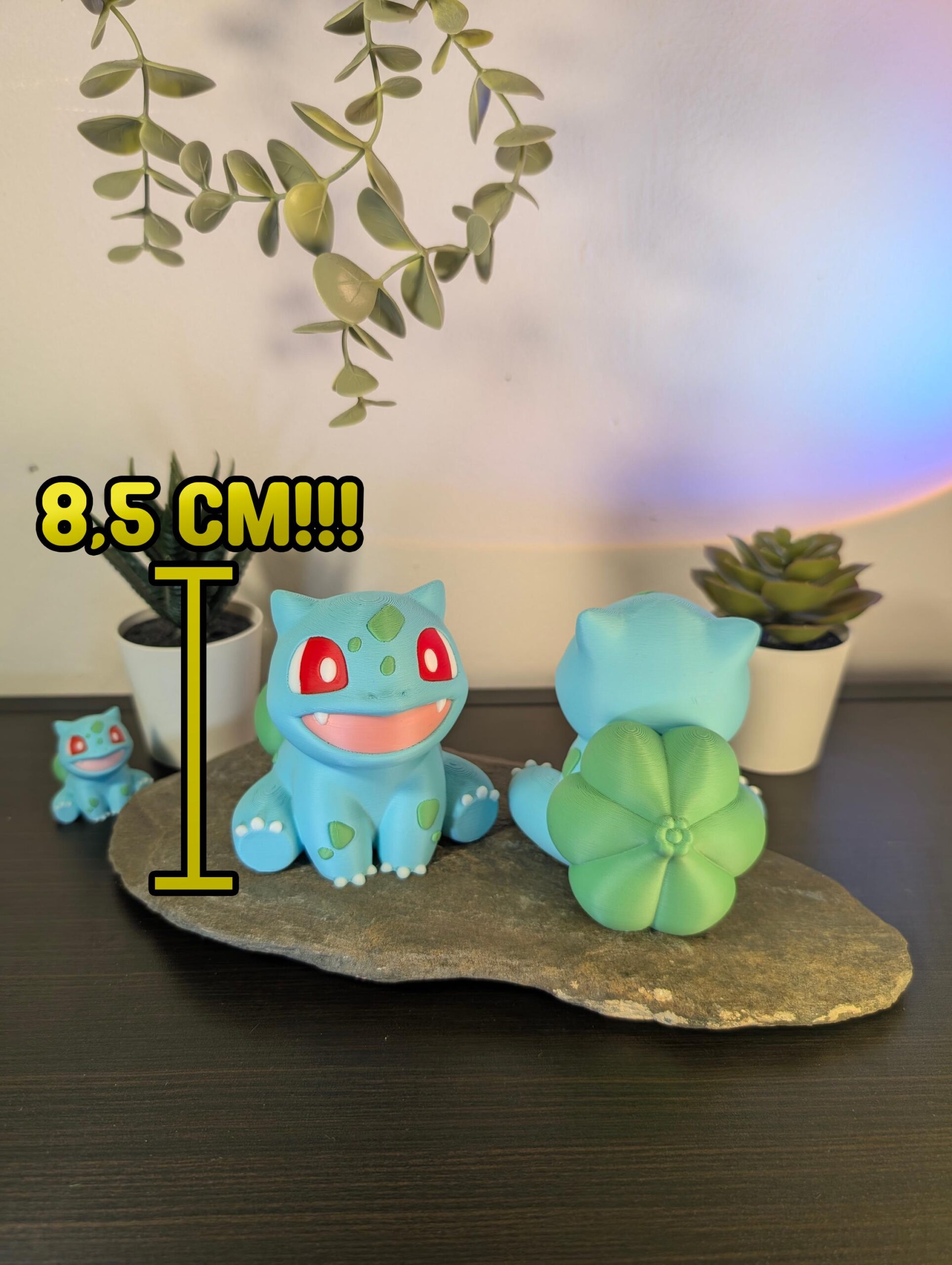 Measuring approximately 8.5 cm tall and 8 cm wide, this compact figure fits neatly into any space while still making a statement. Made from eco-friendly, biodegradable PLA, it’s a guilt-free way to show off your fandom. Perfect as a gift for Pokémon lovers, collectors, or anyone who wants to add a playful touch to their setup, this Bulbasaur statue is sure to bring smiles wherever it goes!